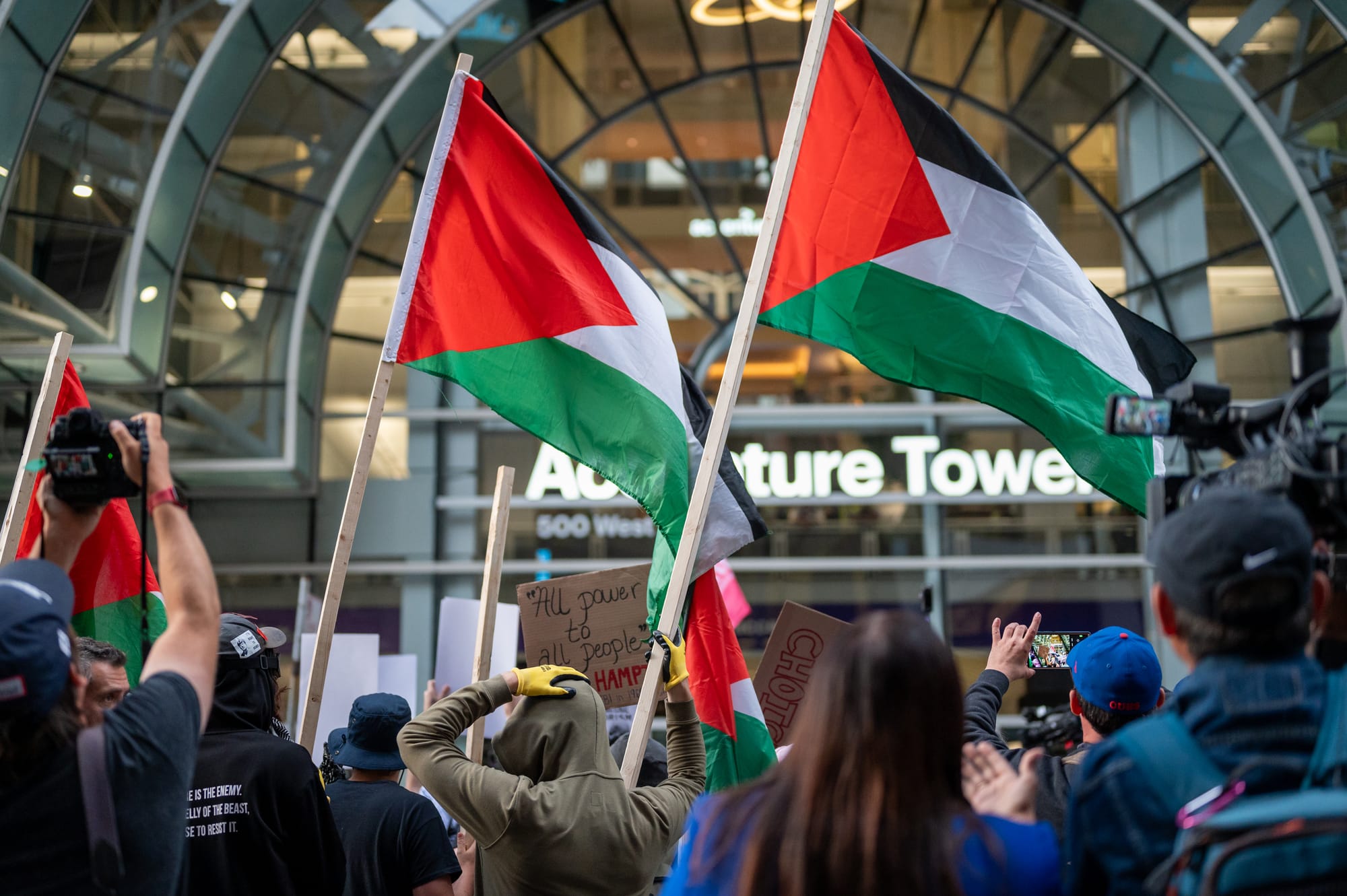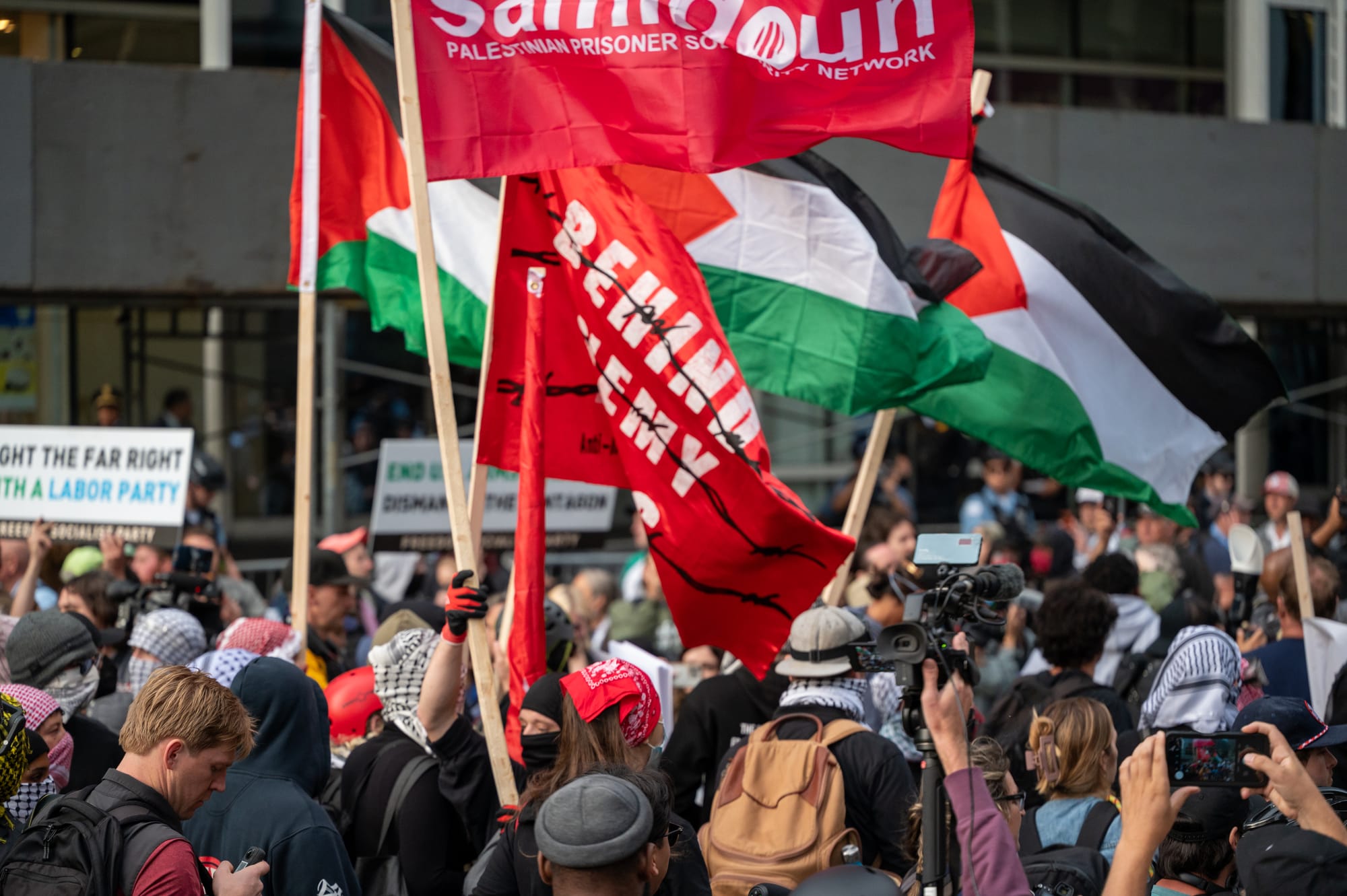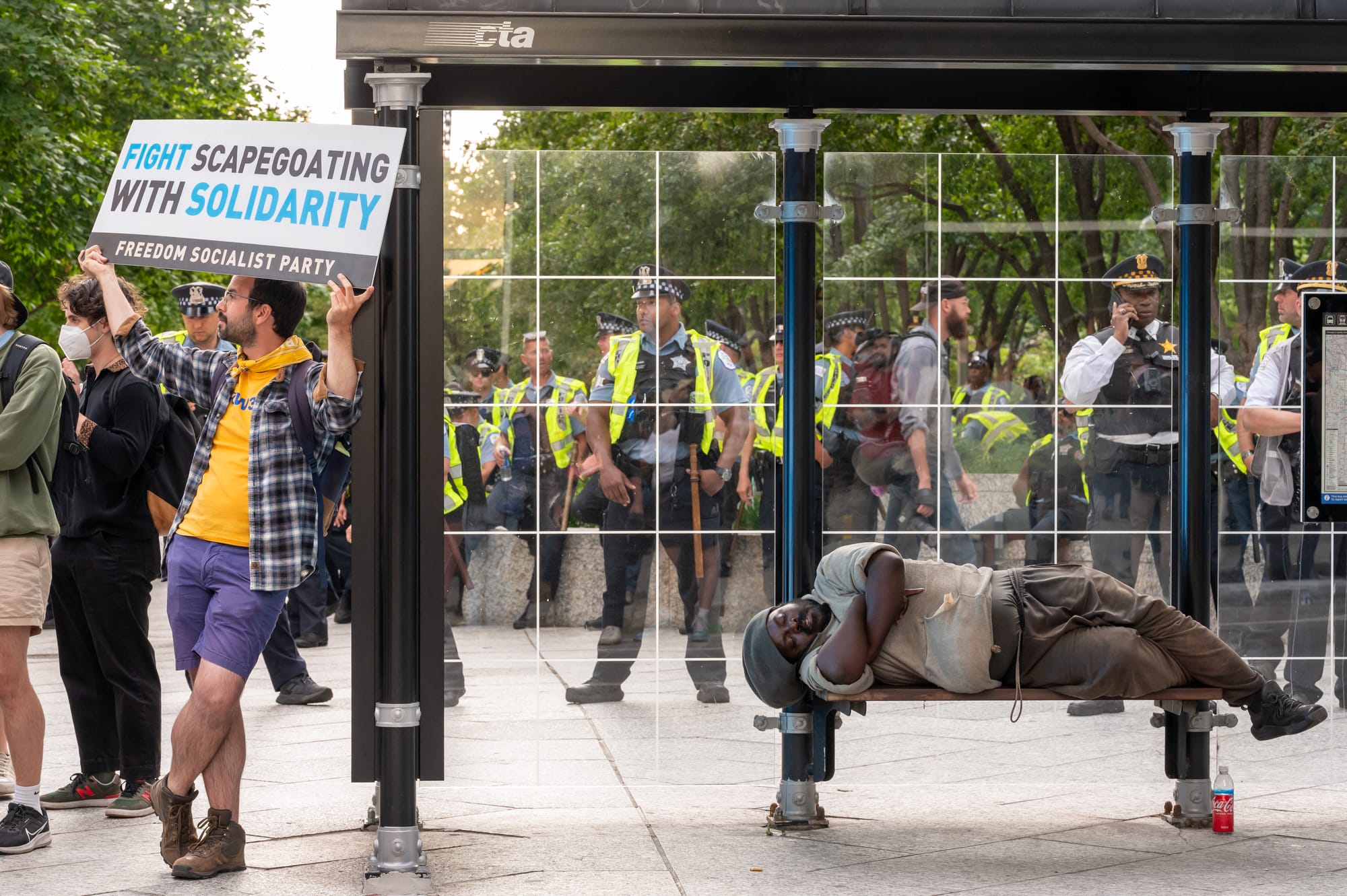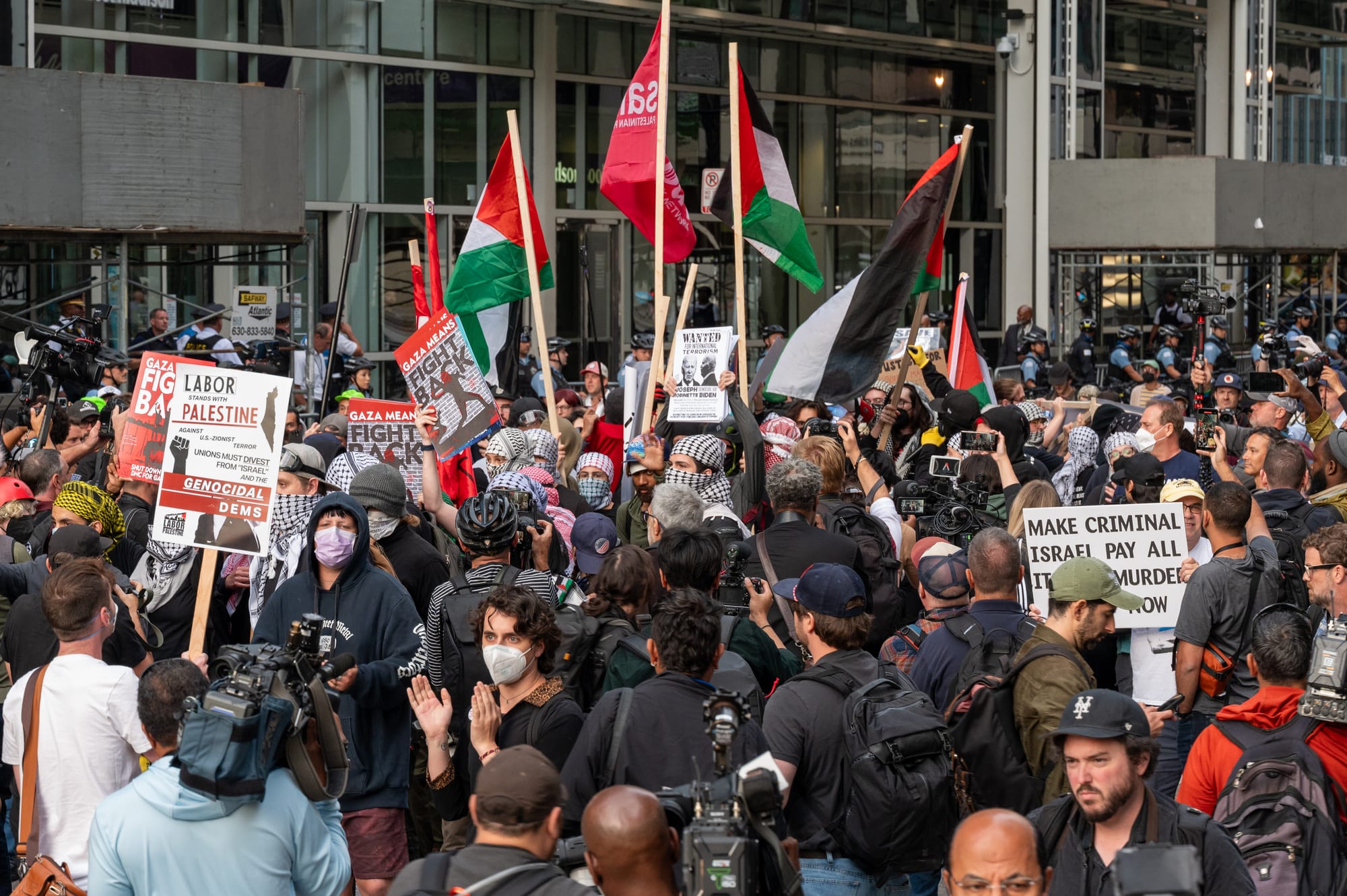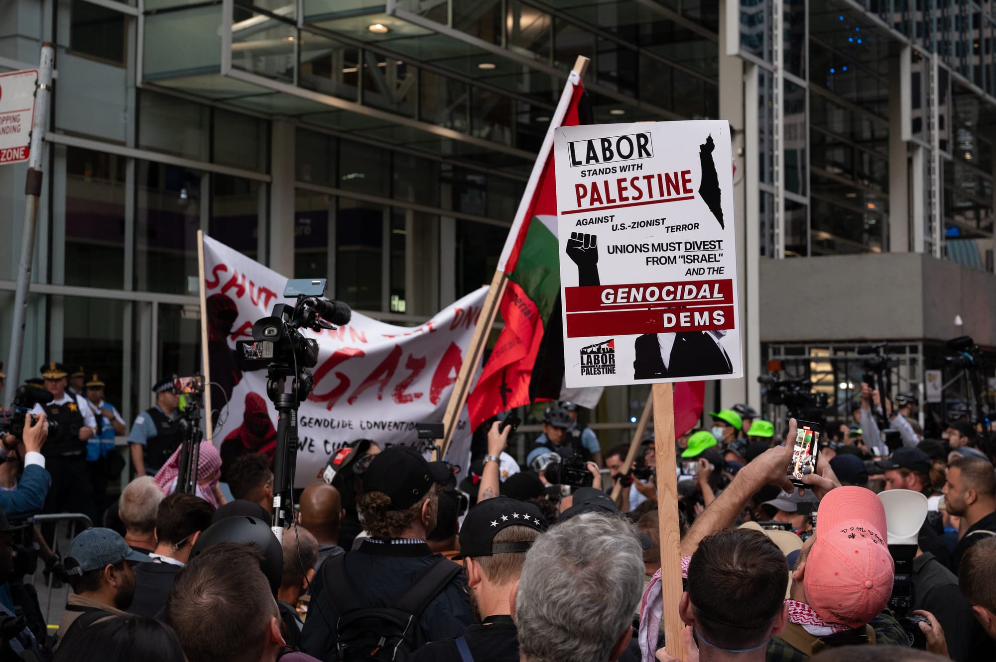 Photos from the protests on Monday, August 19, 2024, in Union Park, during the first night of the 2024 Democratic National Convention in Chicago. Photos Courtesy of Craig Walker | Chicago Journal.