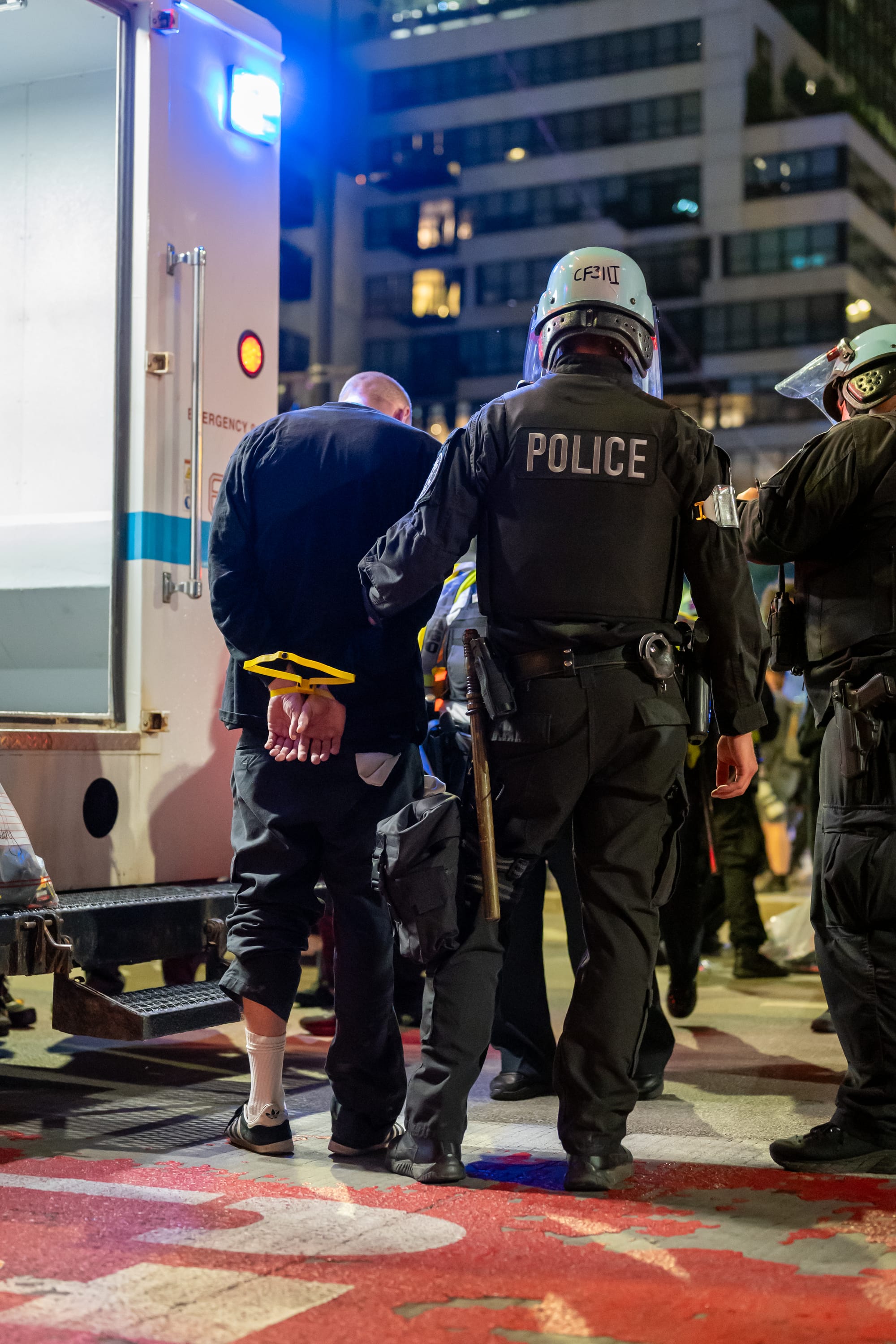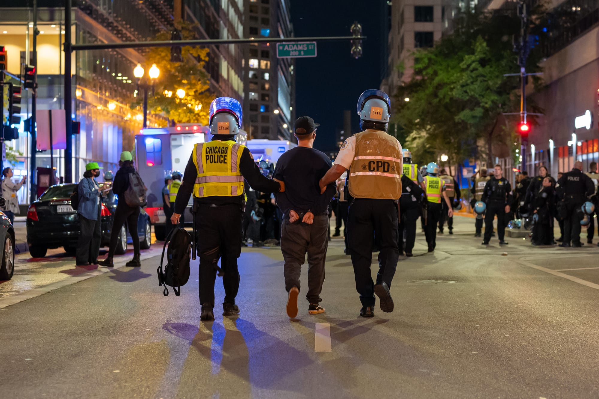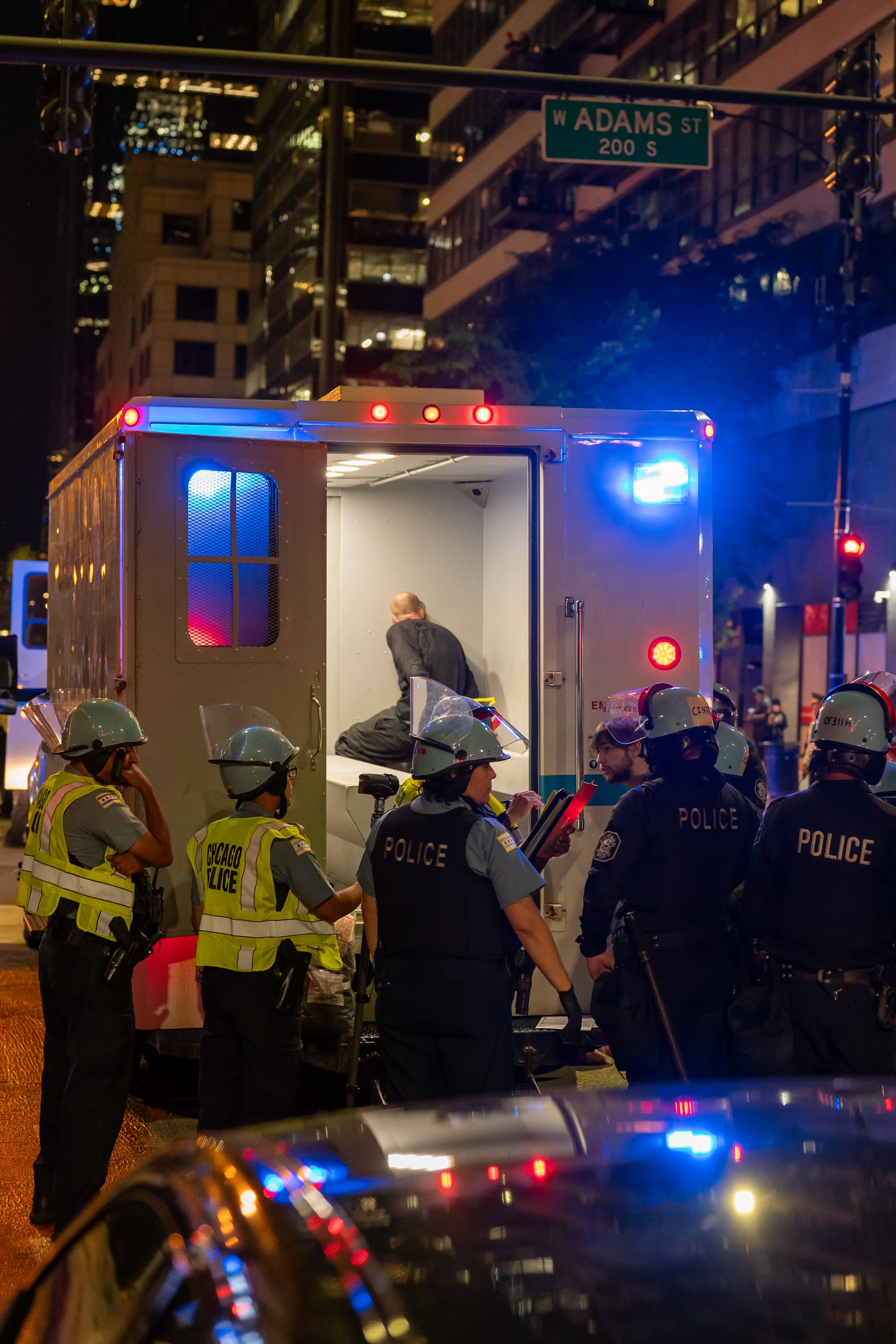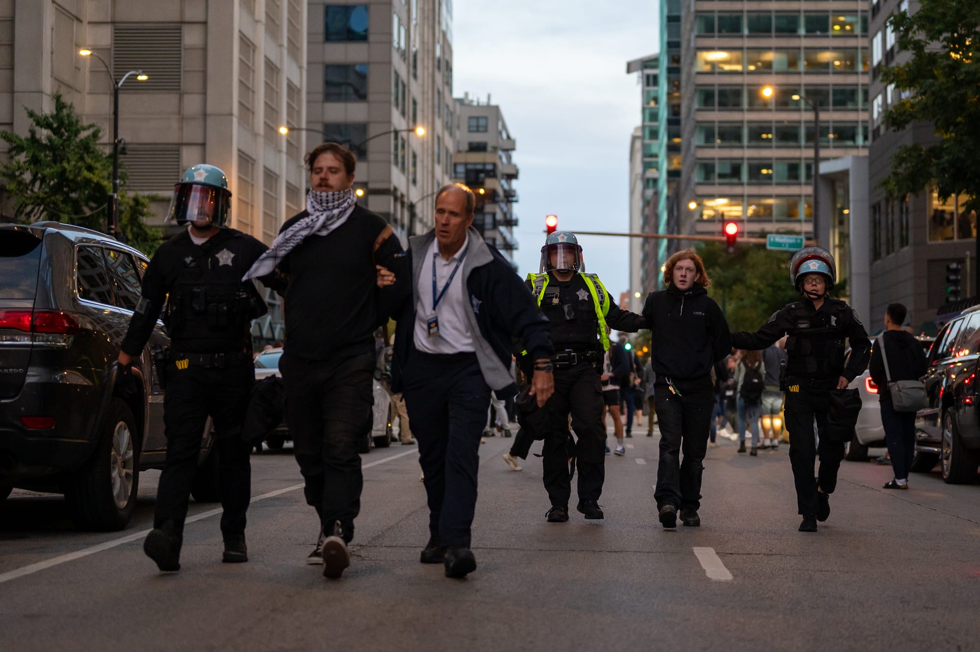 Photos from late in the protest as police began to arrest protesters outside the Israeli Consulate in Chicago on Tuesday, August 20, 2024. Photos Courtesy of Craig Walker | Chicago Journal.