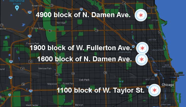 The second incident ocurred in the 4900 block of N. Damen Avenue in Ravenswood.